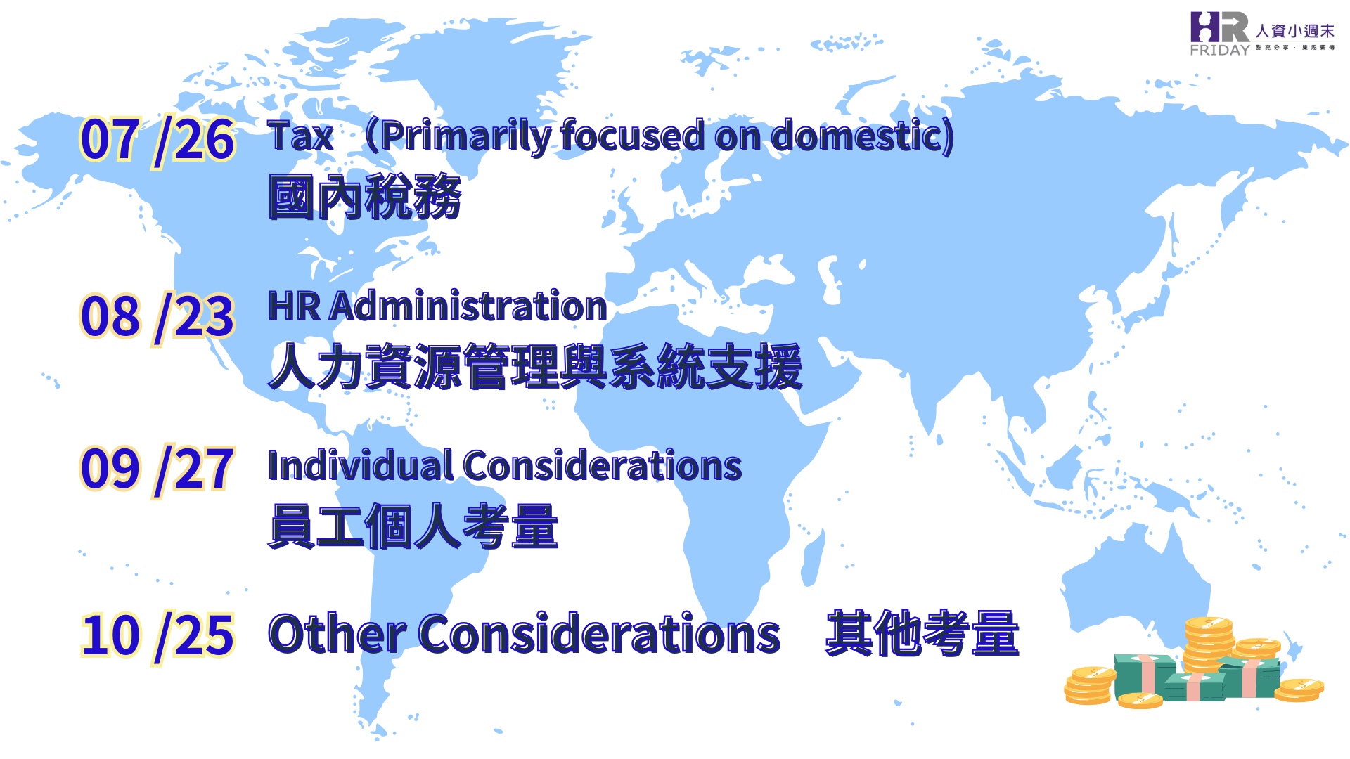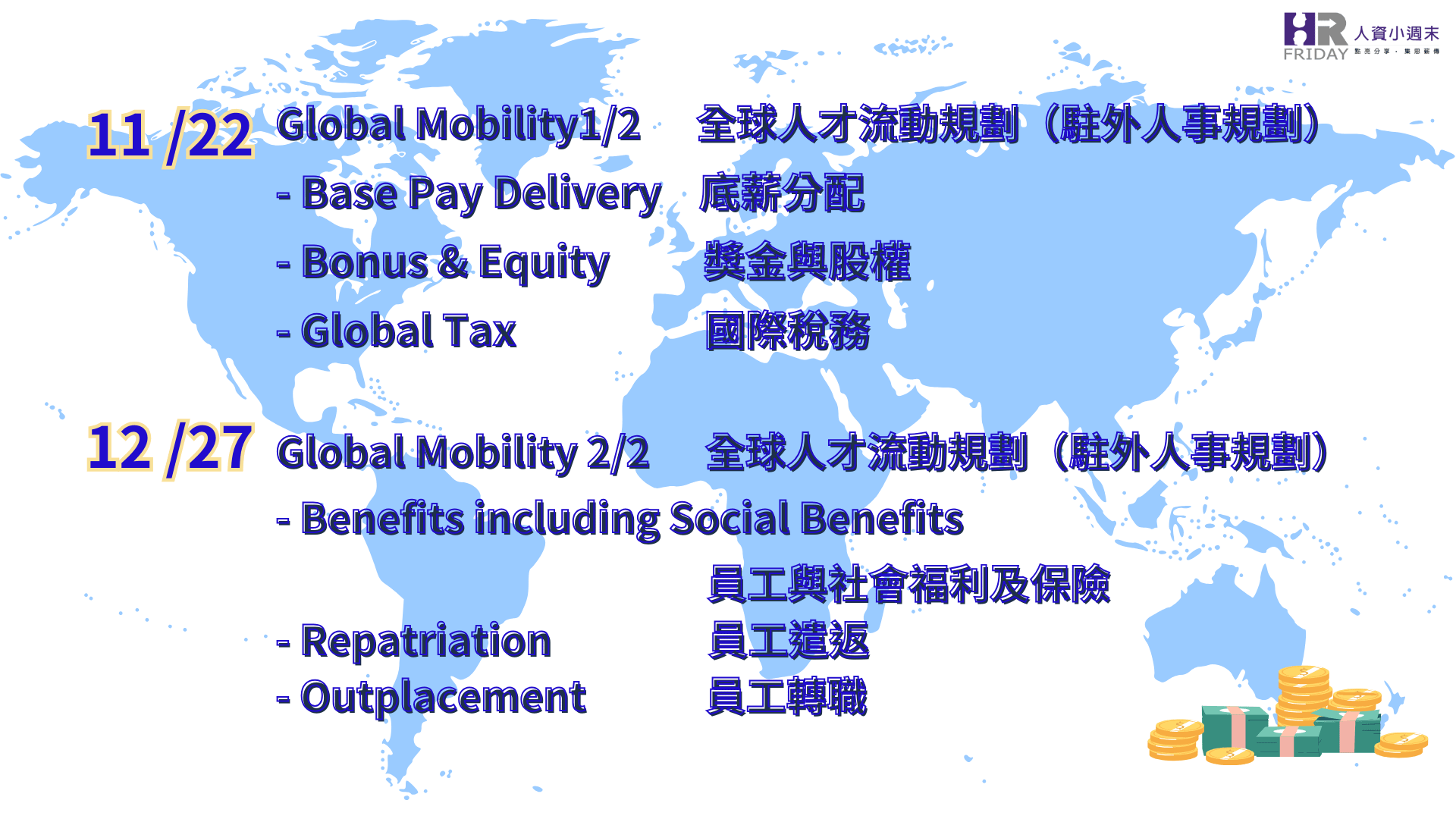 企業跨國營運擴張發展已成為常態,因此企業在制定薪酬策略時,需要考量哪些面向呢?當有員工派遣外地時,HR應給予怎樣的協助及說明,讓員工可以安心上工、更快適應當地?更多您不可不知的跨國薪酬相關議題都在我們的【Global Compensation Master Class 國際薪酬管理】私塾班💡