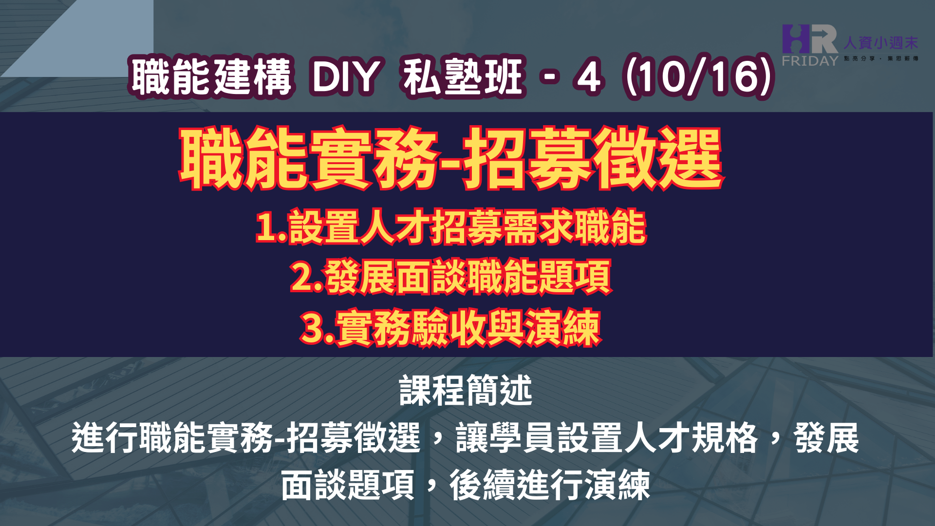 第四場課程(10/16)主題:職能實務-招募徵選