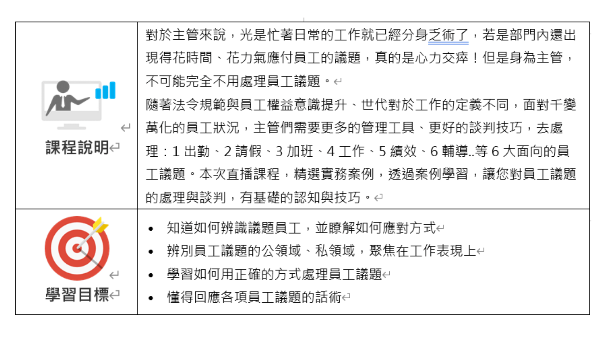 線上主題講座 : 主管真煩傳『員工議題處理 & 談判技巧』