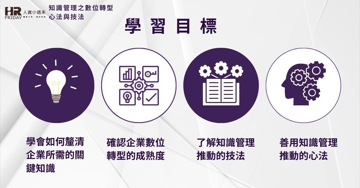 學員將學習到如何推動知識管理的策略,從心法進入到技法的建構,從知識的紮根到擴散,並瞭解如何培養一個支持知識管理的共識與組織文化。總結來說,學員不僅能夠掌握知識管理的核心概念和技能,更能夠理解知識在現代商業環境中的重要性,並將其轉化為企業的持續成長和競爭優勢。