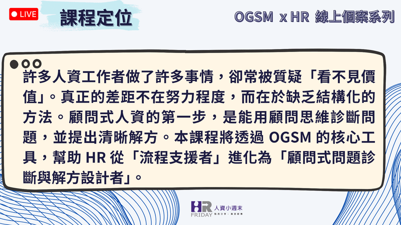 池皓農【OGSM x HR】 線上個案系列 《顧問式人資的起點:用 OGSM 建立診斷與解方思維》2025/10場