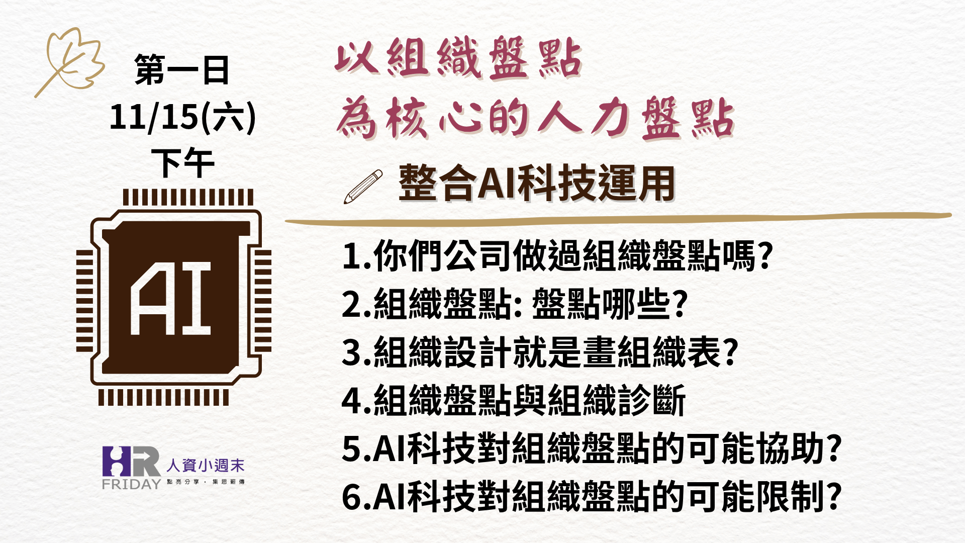 AI時代下的 HR必修《人力盤點》專業認證班 主講 : 蘭堉生老師 ~ 2025 小週末壓軸課程 (實體課程)