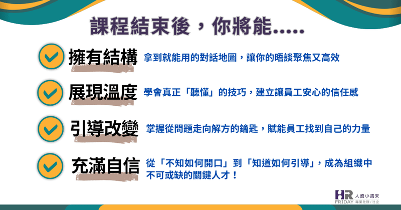- 這不只是一門課,而是 HR角色升級的關鍵訓練。