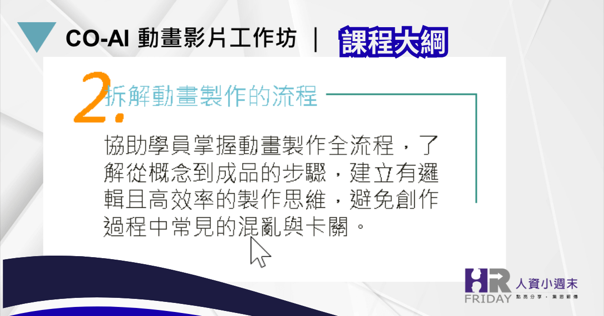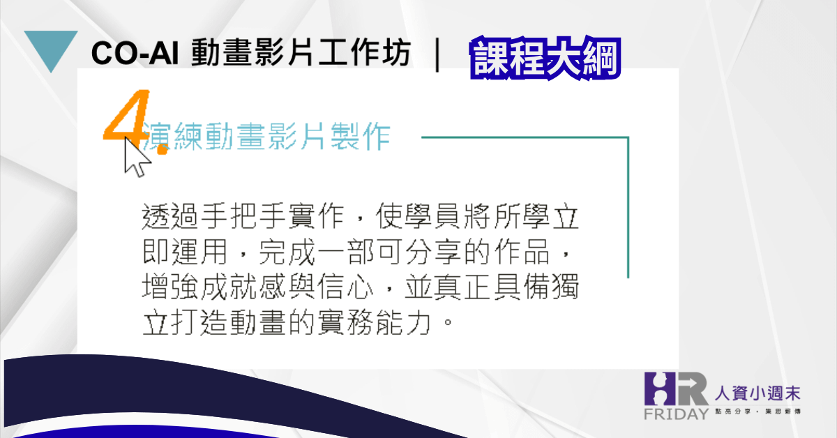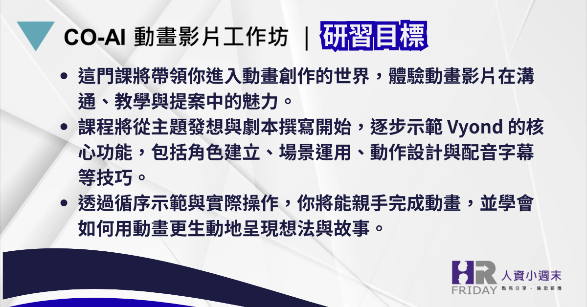 適合對象:HR、講師、課程設計者、行銷人、新創團隊、對動畫有興趣的任何人