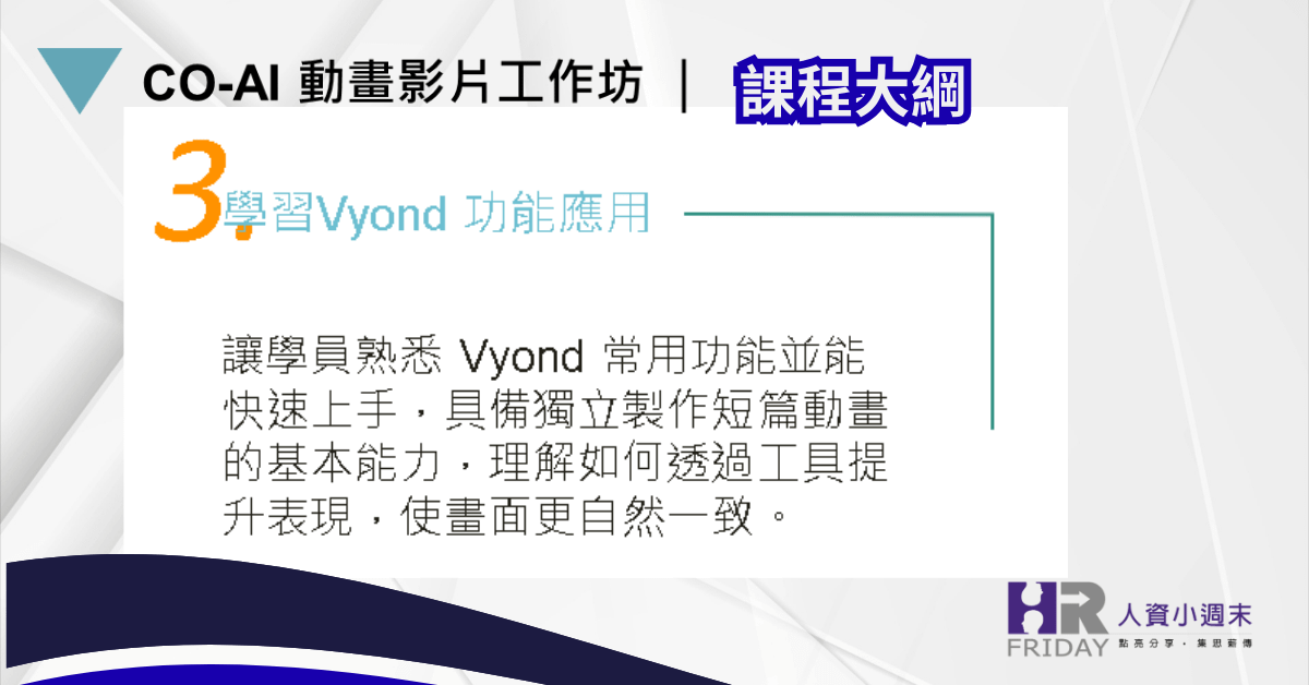 放心,這堂工作坊就是讓你 用 AI + Vyond,三小時就能親手完成第一支動畫影片。