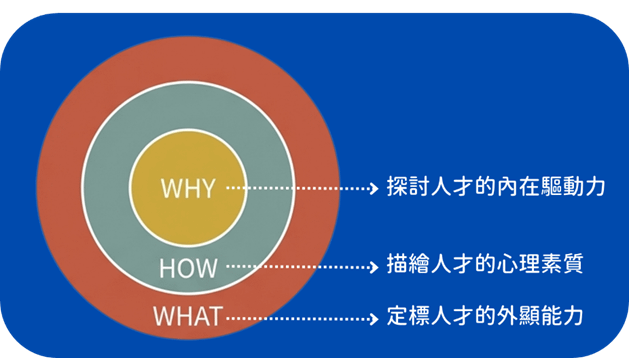 在賽門西奈克的黃金圈理論基礎上,我們重新將人才畫像做一次由內而外的清楚定義,讓人才畫像更為具體與完整,如此才能真實的描述人才的樣貌與和組織間的匹配。