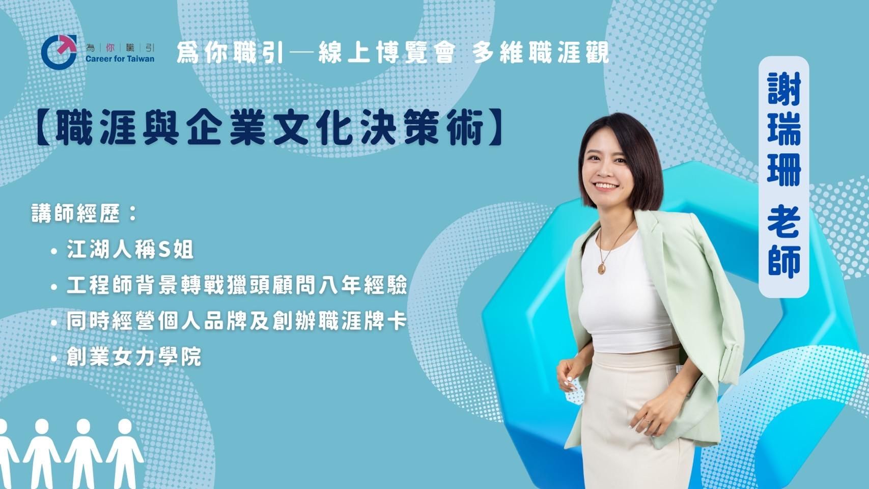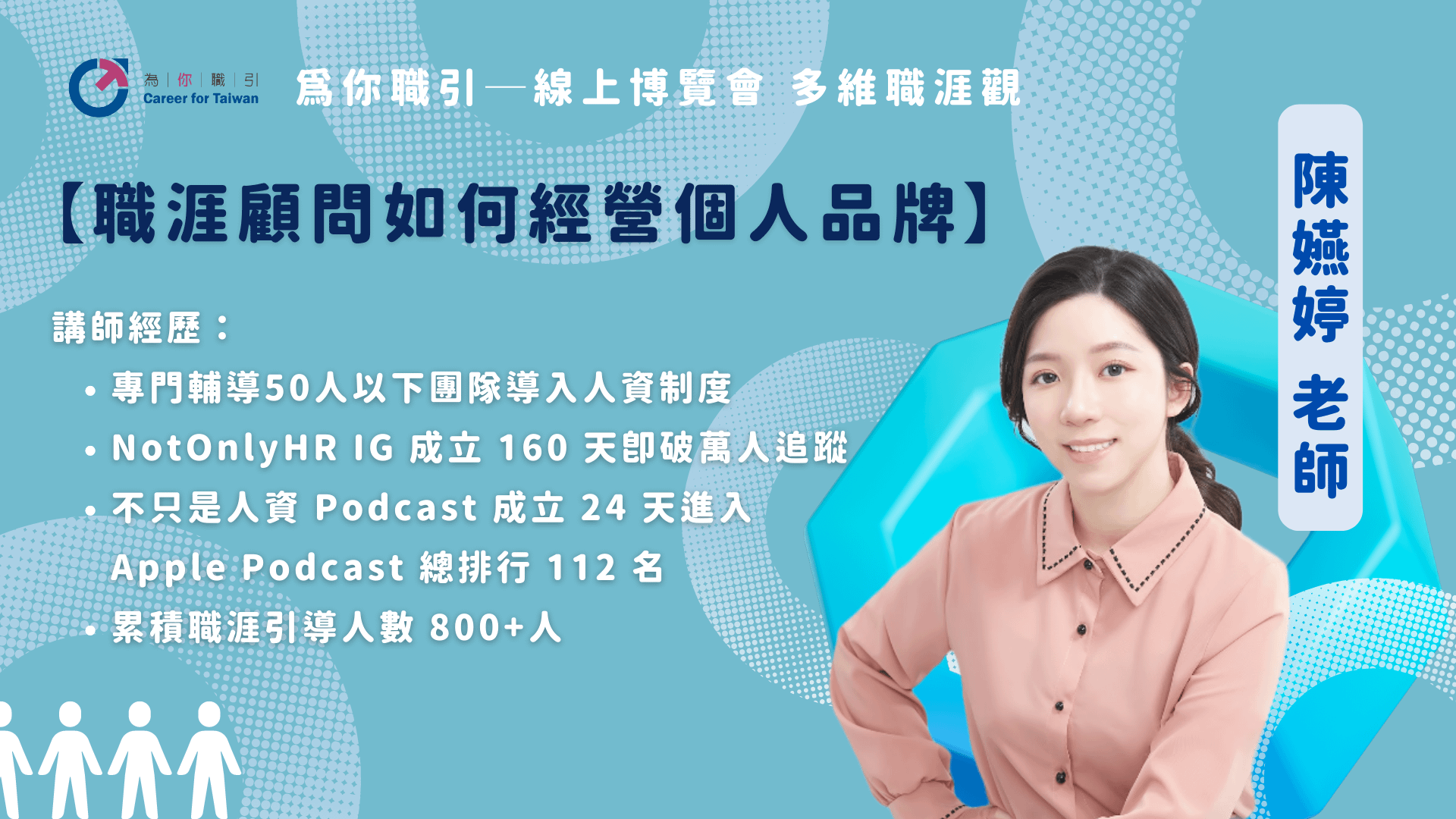 【活動資訊】活動名稱:為你職引─線上博覽會 多維職涯觀活動時間:2022 / 12 / 03(六)09 : 30 〜 16 : 30活動形式:Zoom 會議室線上座談 + QA與會者交流TIME