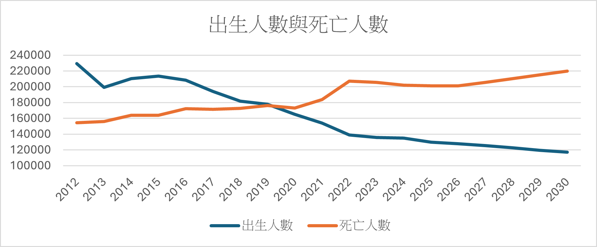 台灣人口自2020年起呈現負成長(出生人數低於死亡人數),隨著人口結構的改變,青壯年數量逐年遞減,企業將面臨新血難以補足的挑戰,此外,自2025年起台灣邁入超高齡化社會,但台灣中高齡勞動率參與率仍難與他國相比。